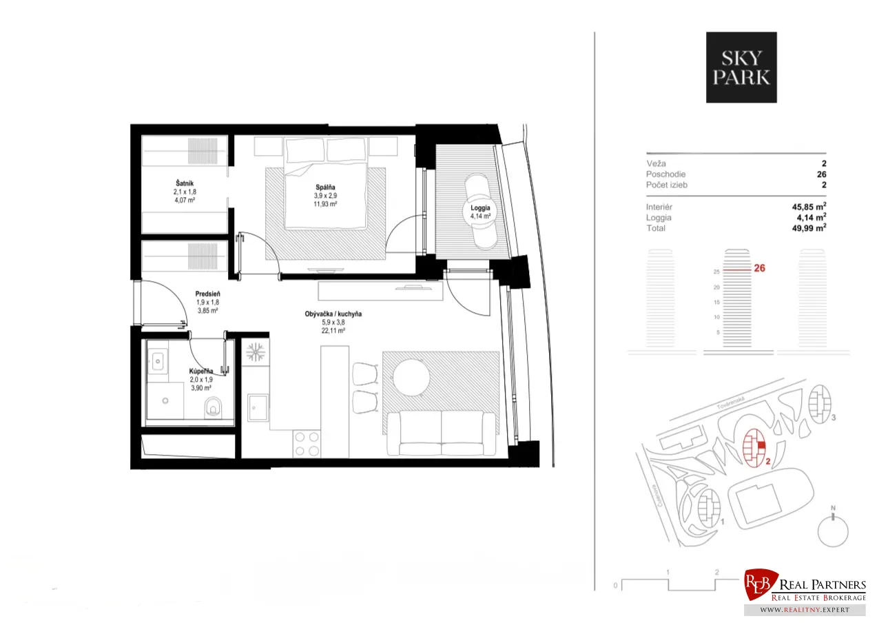 REB.SK präsentiert exklusiv eine moderne 2-Zimmer-Wohnung zum Verkauf in der begehrten Lage des Sky Parks – mit außergewöhnlichem Ausblick, erstklassigem Design und idealer Kapitalanlage.