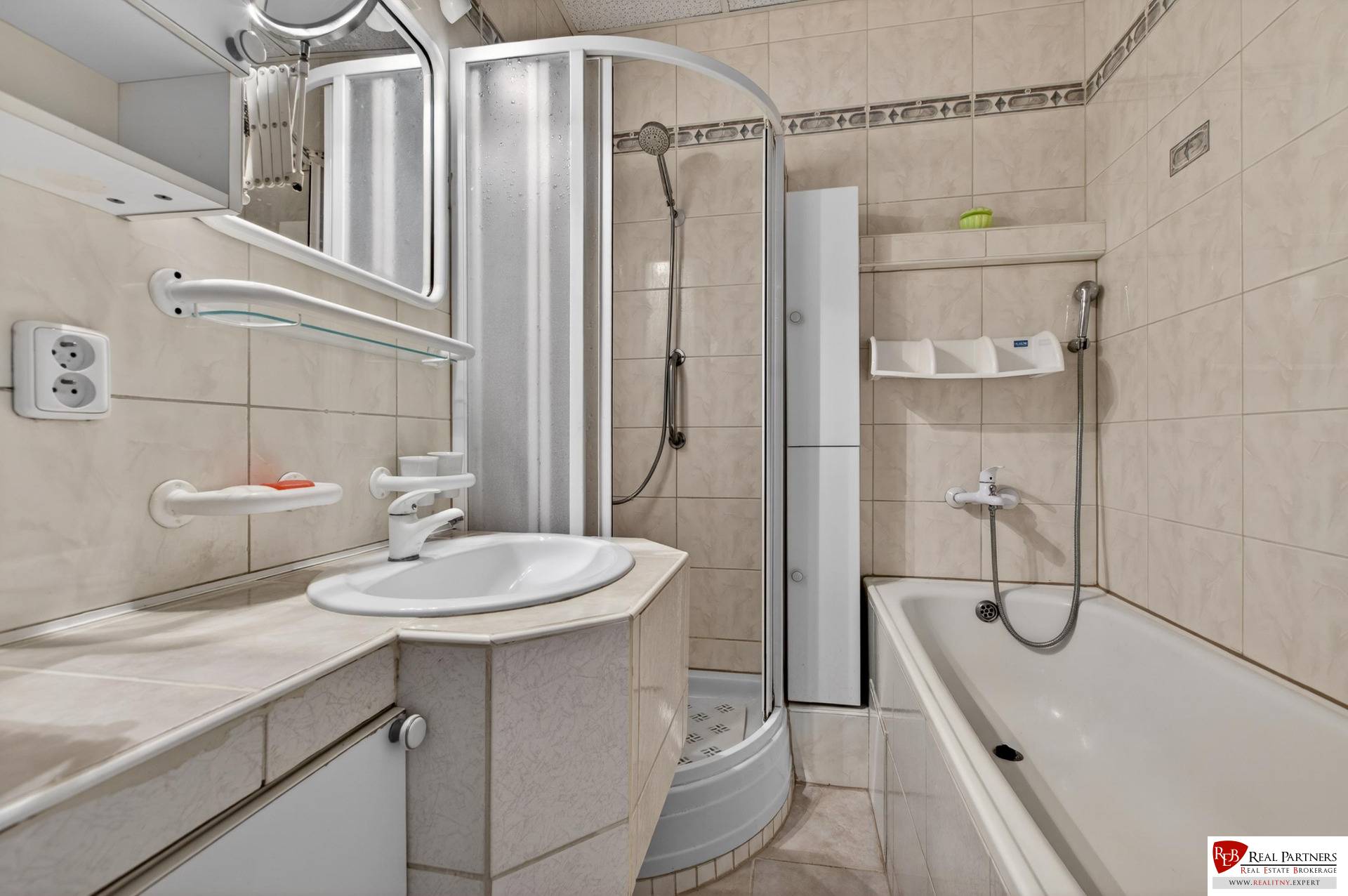 | Badezimmer | Duschecke und Badewanne |