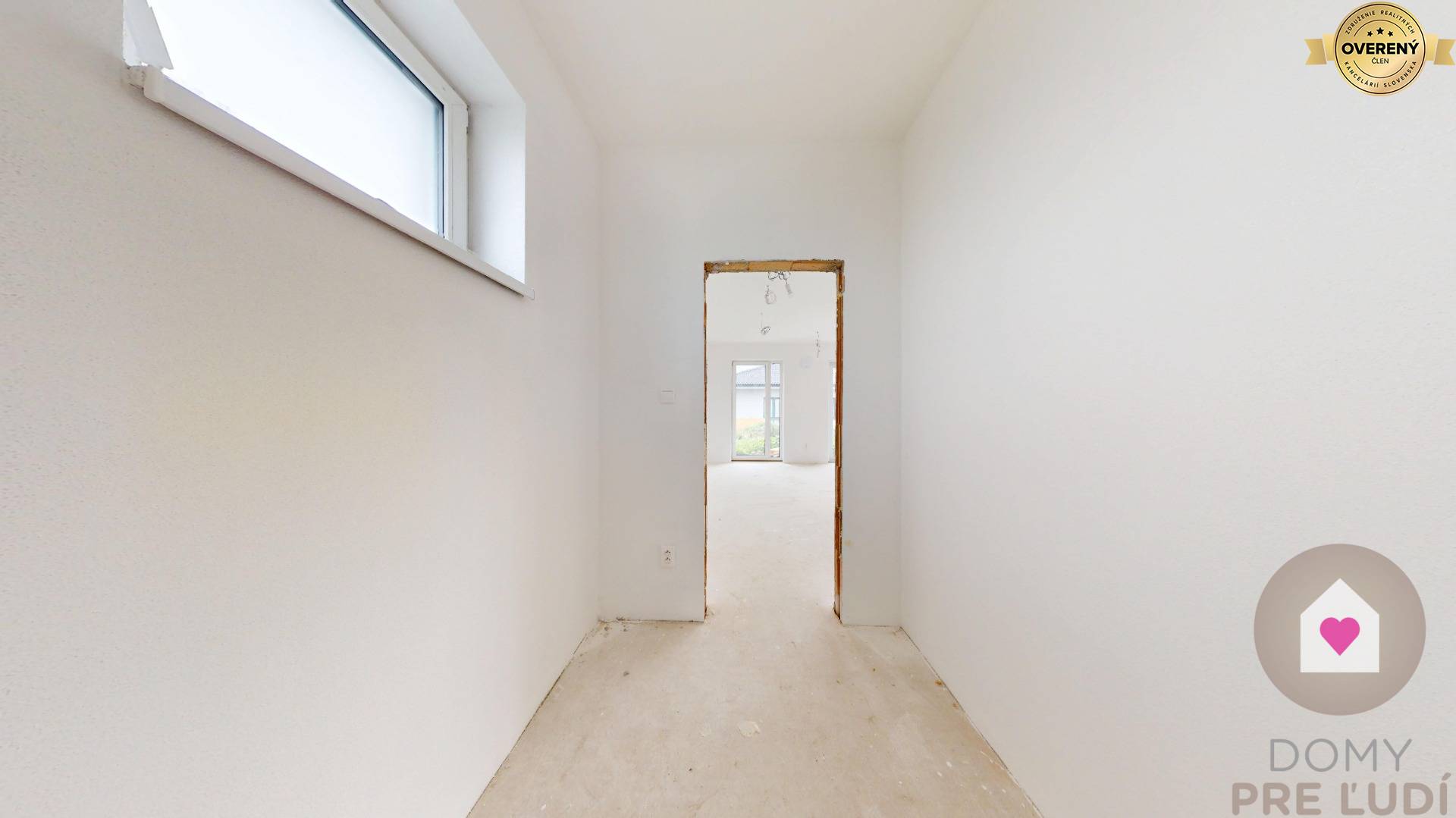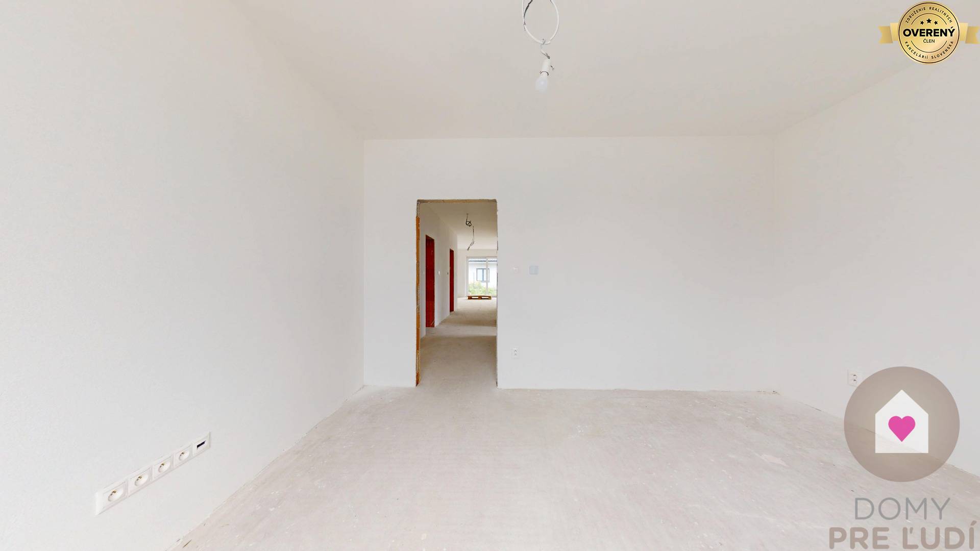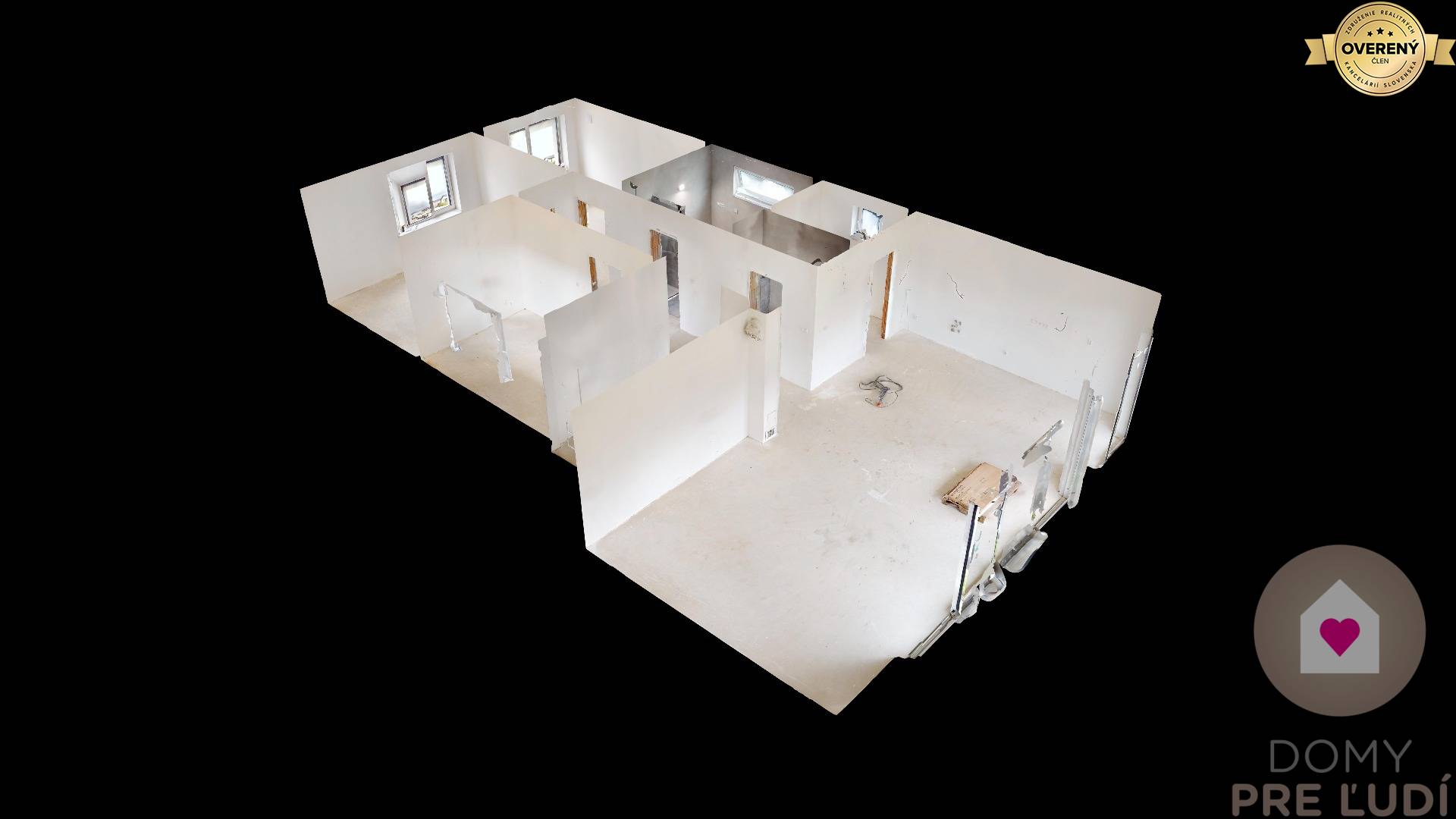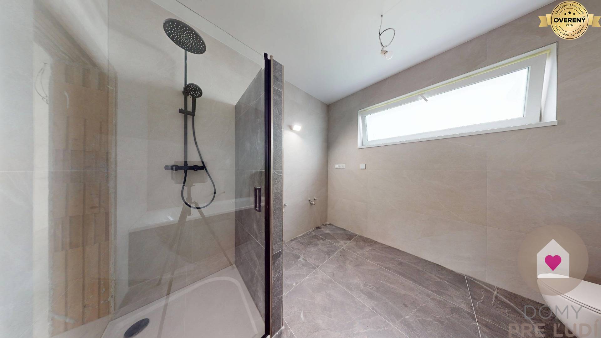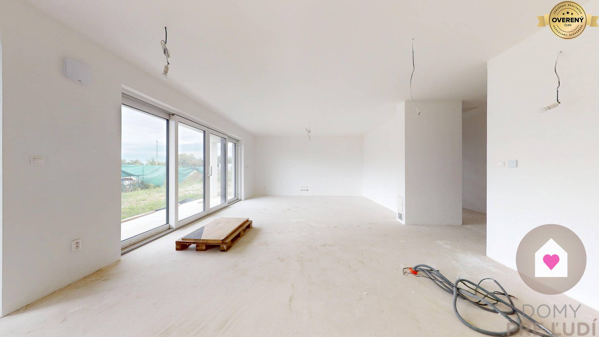 Für das Haus wurden Standardmaterialien verwendet – Außen- und Tragwände aus poliertem Pezinok-Ziegel 30–300 mm, Dacheindeckung MEDITERAN oder BRAMAC – schwarz, Dachdämmung Mineralwolle 300 mm + Dämmung 80 mm • Fassadenisolierung – Polystyrol 150 mm. Fassadenfarbe – weißer Putz. Das Haus hat Kunststofffenster und Eingangstüren – 3 von außen laminierte Gläser in Anthrazit SALAMANDER. Fußböden – Polystyrol- und Estrichboden, vorbereitet für Fliesen und schwimmende Estriche, komplette Elektroinstallation, weiße Schalter und Steckdosen, Datenverkabelung laut Projekt, Vorbereitung für die Möglichkeit des Anschlusses zusätzlicher Datennetze. Das Haus wird über eine komplette elektrische Fußbodenheizung mit Warmwasserspeicher, komplette Wasserinstallation, Wände – Putz + weiße Grundfarbe, komplette Gipskartonplatten, Vorbereitung für einen Kamin verfügen. Das Haus wird an die Versorgungseinrichtungen angeschlossen – Wasser, Strom, Abwasser. Das Haus wird auf einem unbebauten Grundstück verkauft. Das Grundstück rund um das Haus ist vom Fundament aus ebenerdig, ohne Gehwege und Zaun.